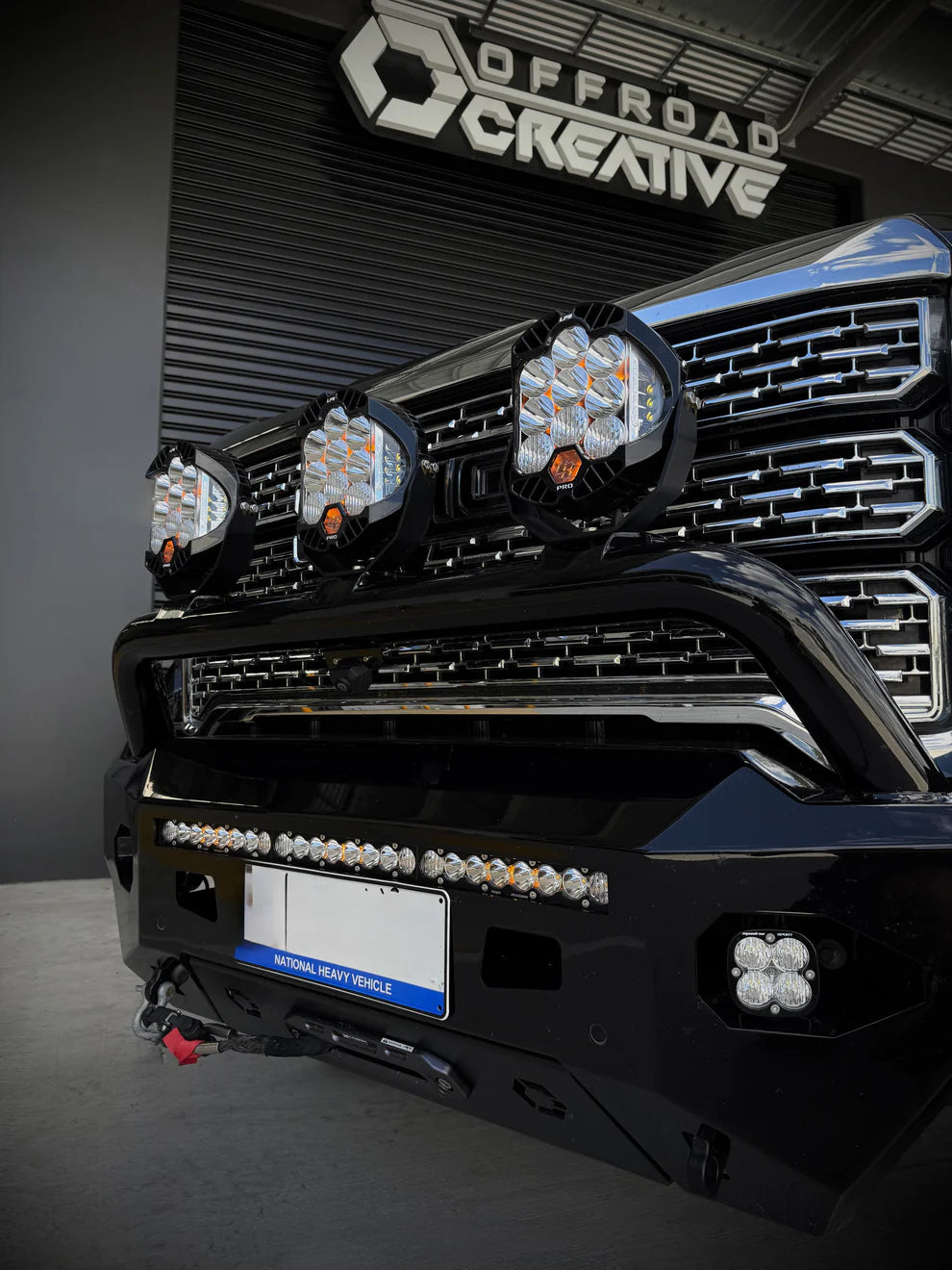 The Offroad Creative Bull Bar is designed and manufactured in Australia to suit the 2020-2023 Offroad Creative GMC Sierra 2500/3500 Bull Bar. Built tough for Aussie conditions, it provides strong front-end protection while integrating seamlessly with your vehicle.