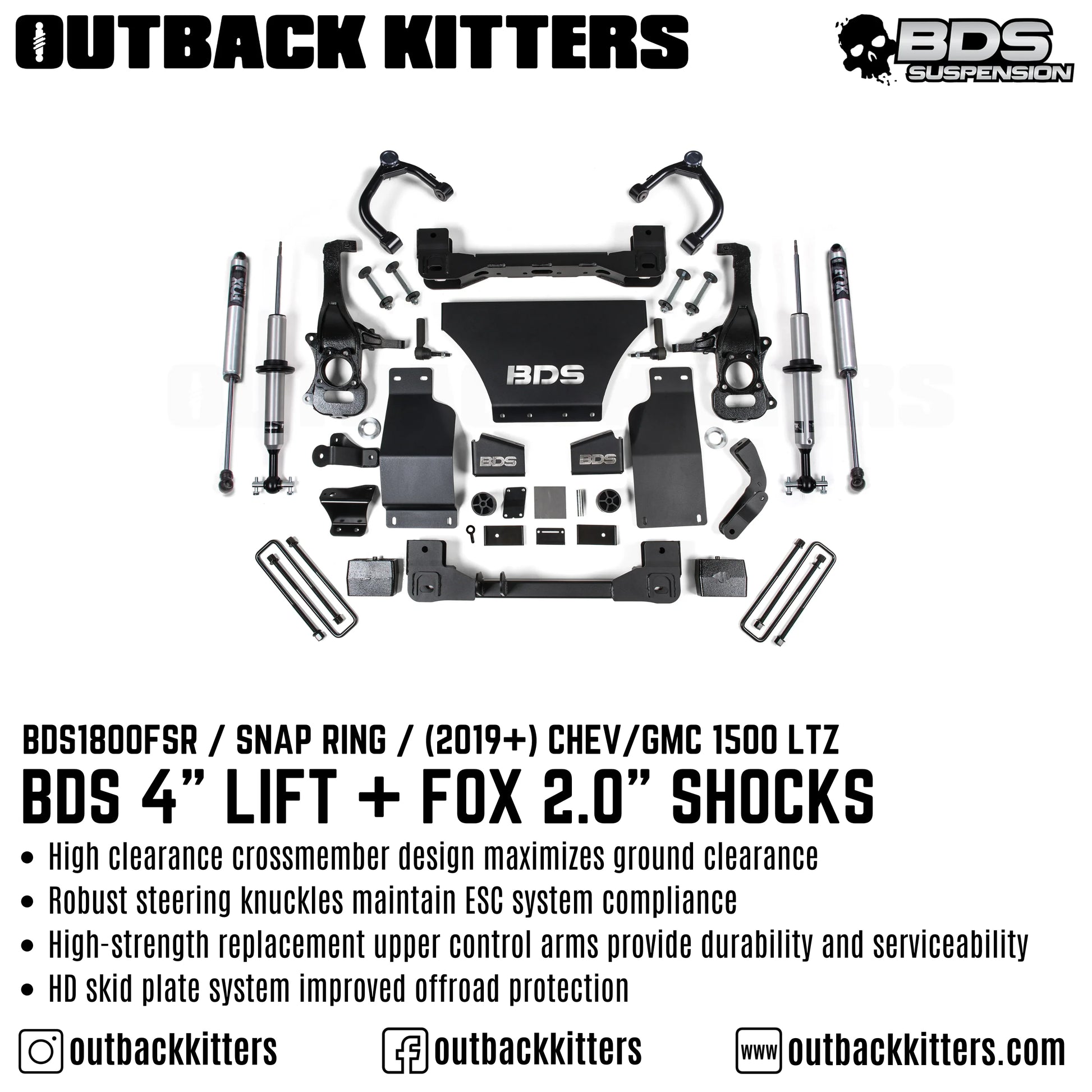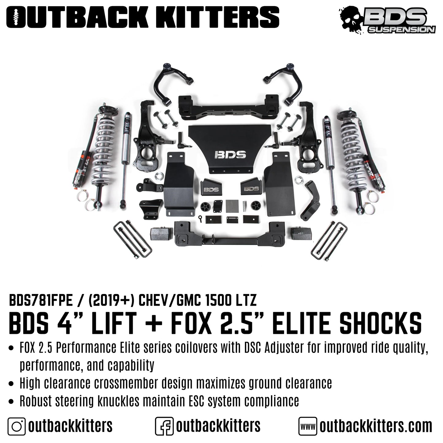 BDS 4" Suspension Lift Kit with FOX Shocks for 2019+ Silverado 1500
